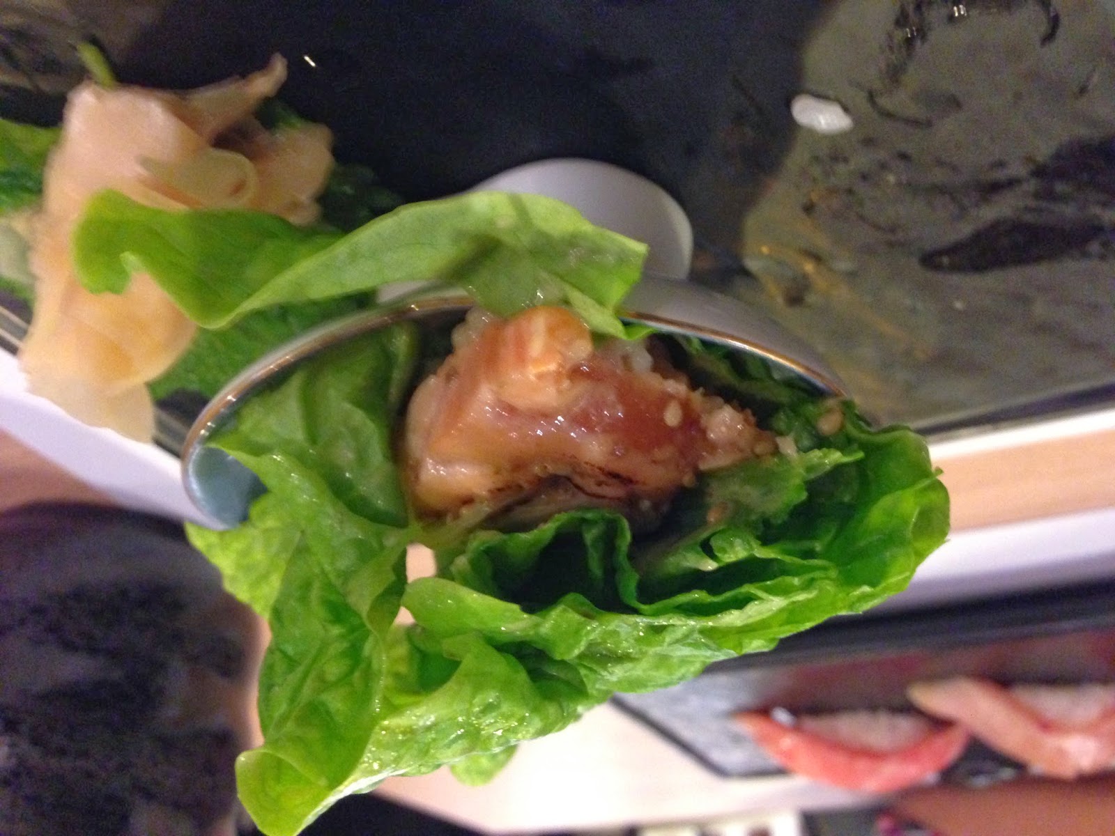 And the sushi course featuring more otoro! The salmon belly wrapped with lettuce was delightful
